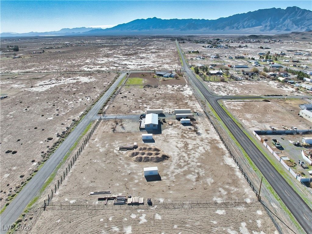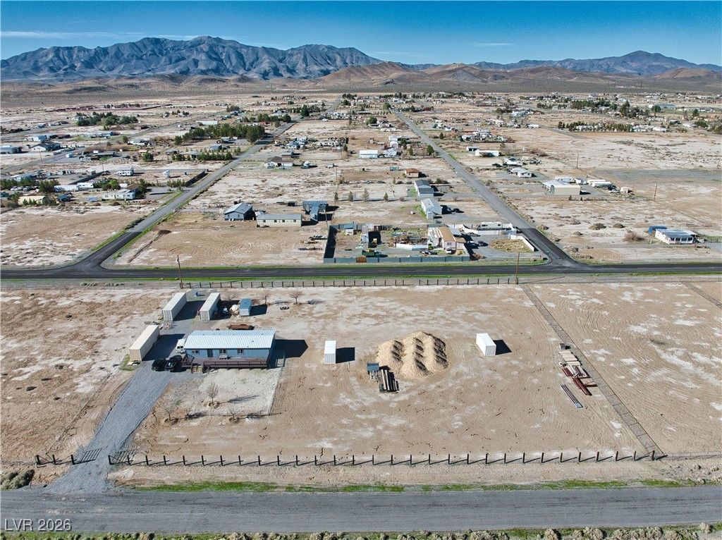 Highly upgraded 4-bedroom, 2-bath home offering 1,560 sq. ft. of comfortable living on 1.9 fully fenced acres with breathtaking panoramic mountain views?just 45 minutes from Las Vegas. Designed with accessibility and functionality in mind, the home features full 36-inch doorways throughout.Inside, enjoy natural wood custom cabinetry, granite countertops with a full-height backsplash, and beautifully upgraded bathrooms. Major improvements include a new hot water heater and a durable 50-year metal roof, providing long-term peace of mind. Relax or entertain on both the front patio and back patio, perfect for taking in the wide-open desert skies and stunning surroundings. The expansive property offers endless possibilities for animals, toys, or future improvements, and three Conex boxes are included, adding exceptional storage or workspace options.A rare opportunity to own a move-in-ready home with land,views,and upgrades ideal for those seeking space,privacy,and convenience to Las Vegas.