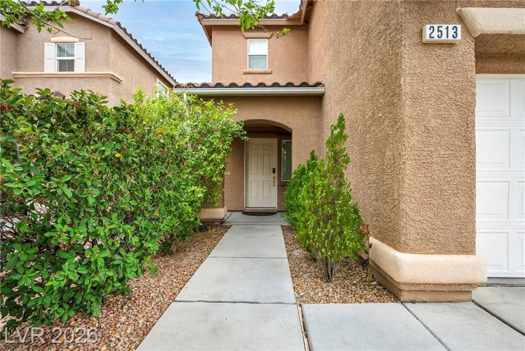 OPEN CONCEPT LARGE SQUARE FOOTAGE design ideal for everyday living with flexible living spaces and a backyard with endless potential. The kitchen has been updated with brand-new stainless steel appliances and freshly painted cabinetry, and flows seamlessly into the main living areas. The downstairs bedroom and full bath offer flexibility for guests, multigenerational living, or a home office. Upstairs features an oversized loft perfect for a media room, game room, or workspace. Spacious primary suite includes walk-in closet, dual sinks, separate tub and shower, and partial Strip view. The backyard is made for easy living, entertaining, and future possibilities. Just walking distance from Costco, dining, parks, dog parks, Aliante Hotel Casino, and easy 215 freeway access.